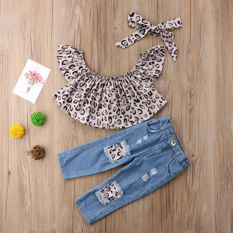 3Pcs Cute Leopard Tops + Destroyed Jeans + Headband !!