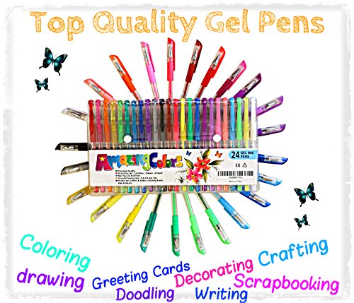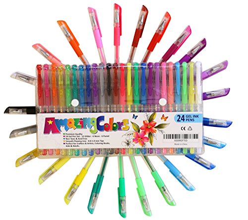 Amazing Wide Range of Quality, Bright and Pretty Gel Ink : 12 Glitter, 6 Pastel & 6 Neon pens. Silky smooth application with easy flowing tip