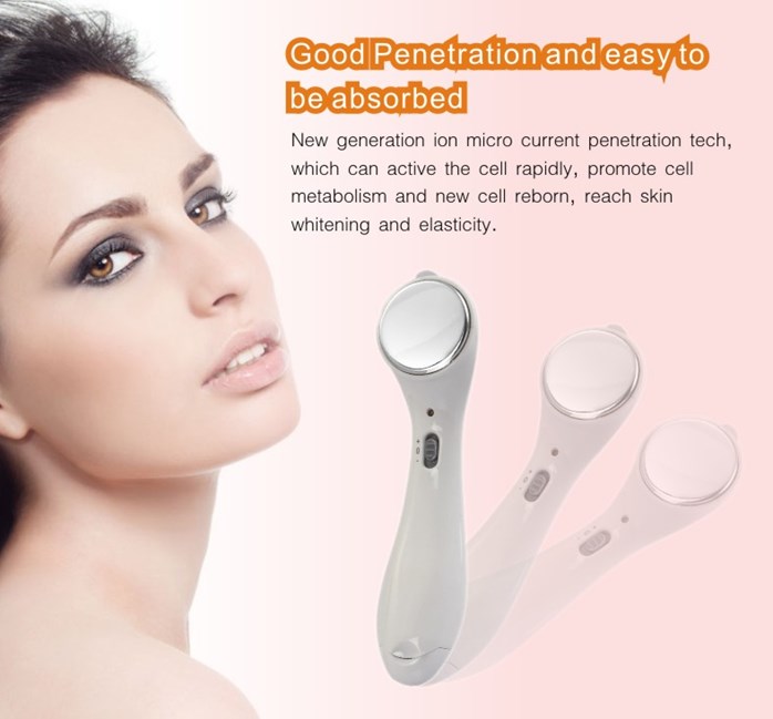 1.Positive Ionic lead out function, removes metal ion in cosmetic from skin, the harmful substances penetrate into skin through horniness deposit as positive ion in skin and cause spots rough and aging skin;