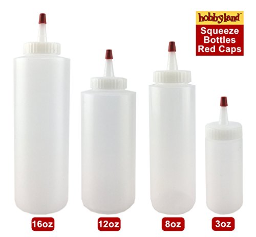 Hobbyland Squeeze Bottles with Yorker Spouts and Red Caps (8 oz, 12 Pack)
