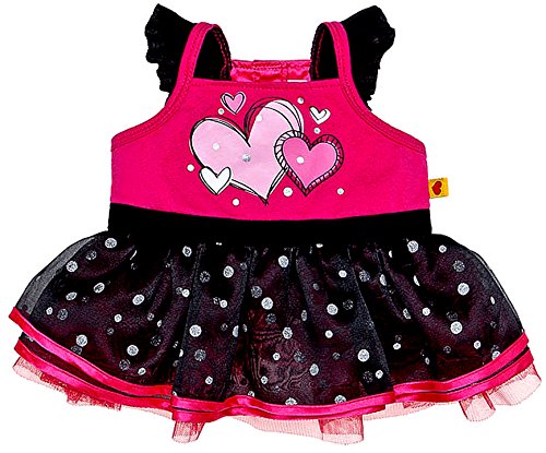 -. Feature : Build a Bear Black Fuchsia Pink Hearts Tulle Trim Dress Outfit / Teddy Bear Size Clothes / Outfit your stuffed animal for a special occasion with this fancy dress! / he teddy bear size black and fuchsia dress has an adorable hearts graphic and polka dot tulle skirt / It's pawfect for parties! Ages 4+