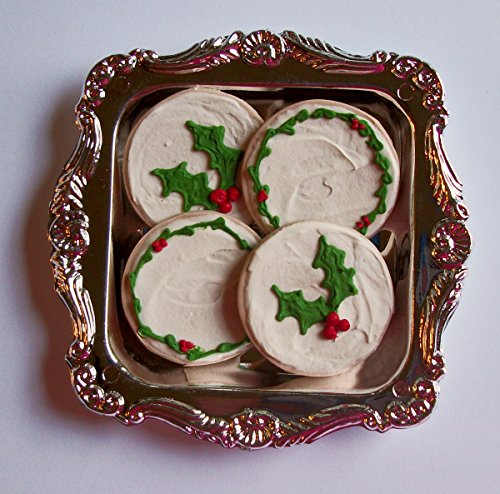 -. Title : Christmas Holly Iced Sugar Cookies Playset with Silver Platter Perfect for 18 Inch American Girl Dolls