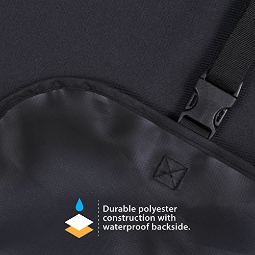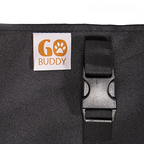 -. Feature : INCLUDES: Go Buddy Black Dog Seat Cover / FULL COVERAGE: Fits most cars, trucks, , sedans, SUVs, and other vehicles. / WATERPROOF PROTECTOR: Heavy-duty polyester construction with a water proof backside keeps pet stains, spills, fur, dander, dirt, and odors off your car seats. EASY-TO-CLEAN: Machine washable and let air dry *Do not tumble dry. / SECURE: 4 adjustable straps that buckle around front and back car s eat headrests, and 2 seat anchorshelp keep the cover in place in your automobile. ADJUSTABLE: Straps have adjuster slides with a full extension of about 25in. Additional features include a FRONT ZIPPER so you can check on your buddy anytime, seatbelt buckle slits for access, and 2 STORAGE POCKETS for pet supplies, leashes, and toys. / CUSTOMER FIRST: Reliable customer service is our P.R.Iority. The Go Buddy Hammock Style Dog CarBench Seat Cover comes with the Go Buddy Brand Guarantee. If you are not fully satisfied with your purchase, we readily offer a hassle-free 30-Day Money Back Guarantee.
