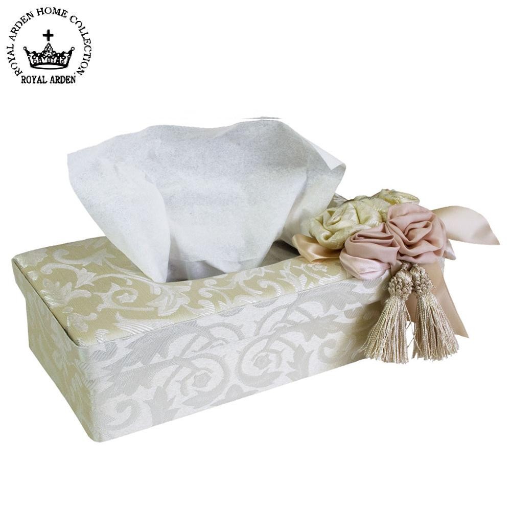 上品で洗練されたデザインと、ボリュームのある豪華なコサージュがポイントのティッシュボックスケースです。