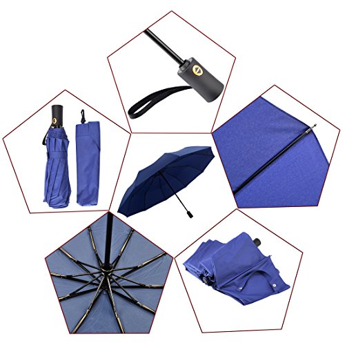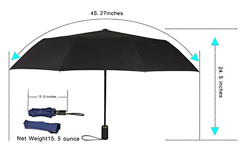 -. Binding : Misc. -. Brand : Petforu -. Feature : Basic information:Diameter 45.3in (115cm), Folds down to 12.6in (32cm), Dark Blue(Color),Weight: 1lb (460g). It is easy to storage in backpacks, purses, lage, briefcases, car and more! You can carry it to anywhere you want. As it suitable for any occasion. / Tough Ribs:Most umbrellas are made of 6 or 8 aluminum ribs, compared with these unbrellas, our unique frame systems are made of high quality fiberglass. The Strengthened Black Metal Shaft and 10 Fiberglass Ribs ensure HIGH WINDPROOF,STURDINESS AND DURABILITY. You will never worry about it is easy to breaking and rust. / Special material:This travel umbrellas was made from sturdy steel and quality waterproof cloth, the umbrella is highly durable and capable of withstanding strong winds and rains, and keep you and your belongings dry even during the toughest storms. / Cloth: We make sure that DETAIL DETERMINE SUCESS OR FAILURE OF PRODUCT.Adapt the advanced technology of 210T Pongee umbrella cloth,our umbrella quality are different from other umbrella in marketplace.Our material are filmy but could farthest prevent permeation of rain water. / Windproof :The umbrella is tested to endure winds of more than 60 miles per hour, up to hurricane force. Even in the unlikely event that it's turned inside-out, it won't break. This umbrella is subjected to a durability test of more than 5,000 repetitions. -. ProductGroup : Sports -. ProductTypeName : SPORTING_GOODS -. Title : Umbrellas, Petforu 10 Glass Fiber Ribs 210T Pongee Three Folds Solid Windproof Waterproof Unisex Large Full Automatic Open Clear and Rain Umbrella With Comfortable Handle For Golf,Sport,fishing,Travel,Walking,Raining,Snow-And-1Pcs Random Umbrella Stand Pothook