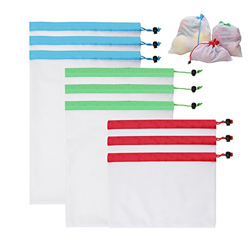 Tenn Well 9 PCS Reusable Produce Bags, Washable and Breathable Mesh Bag for Grocery Shopping, Storage, Travel, Vegetable and Toy(Red Blue Green)
