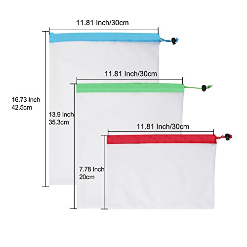 MULTI SIZES: We provide 3 large 16.73'' x 11.81'' bags, 3 medium 13.9'' x 11.81'' bags, and 3 small 11.81'' x 7.78'' bags, this vegetable bags just design for you need