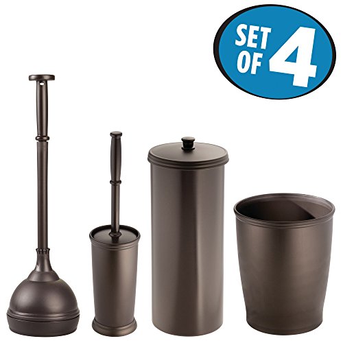mDesign Plunger Bowl Brush, Trash Can, Toilet Paper Roll Canister and Toilet Brush Bathroom Accessory Set - Pack of 4, Bronze