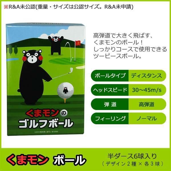 高弾道で大きく飛ばす、くまモンのゴルフボール!ディスタンス系ツーピースボールです。プレーのみならず、コンペ景品・おみやげなどにも最適♪