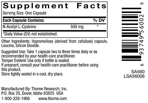 N-acetylcysteine (NAC) for liver support, detoxification, and immune support.Since 1984, Thorne has set the standard for the exceptional formulation and quality manufacturing of nutritional supplements. Thorne delivers premium, science-based products, a health diagnostics technology platform, and the latest in medical education. With more than 350 products, Thorne is the most dispensed brand by 30-40 year old health-care practitioners. Thorne is dedicated to improving the health of our community as well as increasing the knowledge of nutritional health and wellness. Since 2012, Thorne has partnered with educational institutes and local charities to donate more than $1M in products and profits.