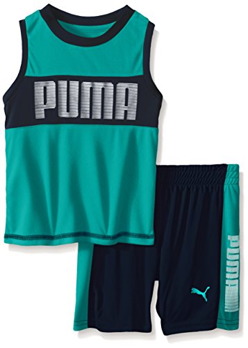 PUMA Little Boys' Toddler Active Tank and Short Set, Red, 2T