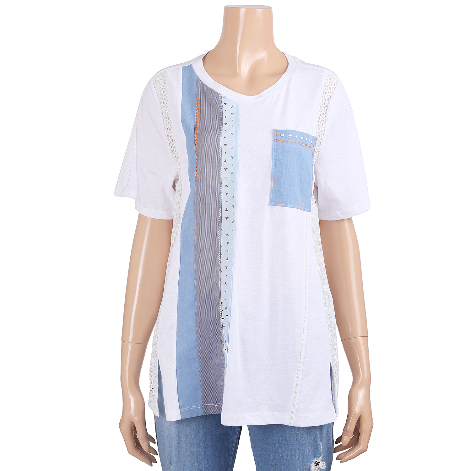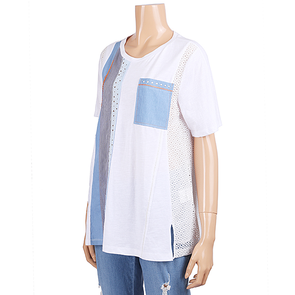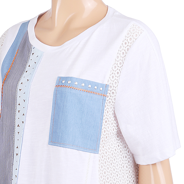 이 제품은 티셔츠겸블라우스스타일로 여성스러움이 돋 보이는 제품 입니다