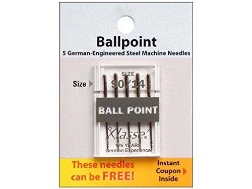 -. Feature : Steel ballpoint needles for sewing machines / Rounded tip pushes fabric fibers apart / Prevent skipped stitches, runs and puckers / Use with polyester or polyester and cotton blended threads / Offers 5 per package