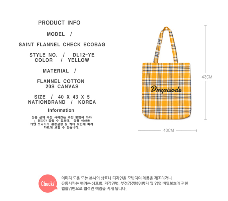 명품 및 하이엔드 스트릿 셔츠 플란넬 패브릭으로 제작된 상품으로 포인트 착용이 가능한 스타일리쉬 체크 에코백입니다.