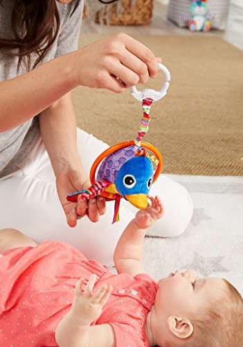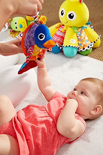 Baby will love to watch Flipping Felipe flipping his tail. Pull the white clip to make his vibrant, patterned Dolphin tail flip back and forth. Baby can also discover his squeaker nose and crinkly fins. The tether ring accessory will help sooth baby, while the bright colors, contrast patterns, and multiple textures encourage baby to explore. The Lamaze clip lets you hook Felipe to strollers, carriers and diaper bags to take him along for on-the-go fun.Feature