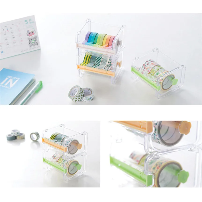 function::Can hold ten 15mm rolls of tape by two dispensers.