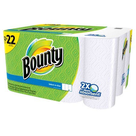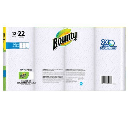 -. Brand : Bounty. -. EAN : 0689279885435 -. Feature : 2X more absorbent,* so you can use less (*Vs. the Custom-Size-It brand in the U.S. and the Premium Green Leaf Towel in Canada.) / The Quicker Picker Upper (Vs. leading ordinary brand) / 12 Super Rolls = 22 Regular Rolls / Select-A-Size White Sheets / If you love Bounty paper towels, try Bounty Quilted Napkins -. ProductGroup : Kitchen -. ProductTypeName : KITCHEN -. Size : 12 Super Rolls -. Title : Bounty Paper Towels, Select-A-Size, 12 Super Rolls -. UPC : 689279885435