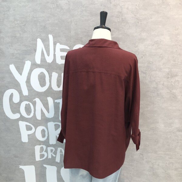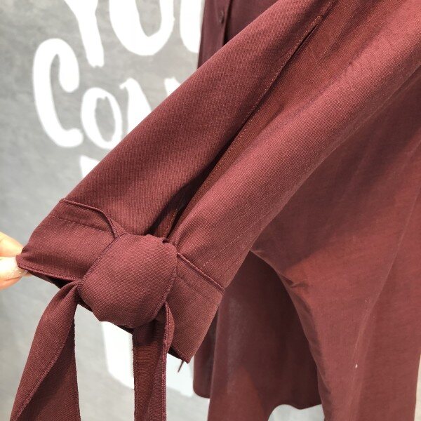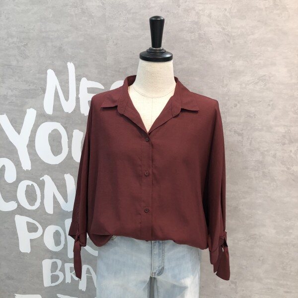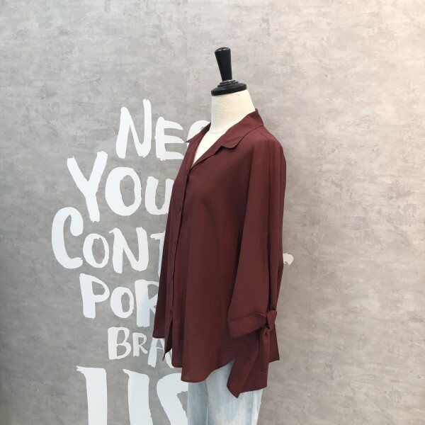 심플하고 베이직한 느낌의 깔끔한 블라우스 셔츠로 어깨선부터 자연스럽게 떨어지는 루즈핏이 멋스러우며 소매리본과 트임이 포인트되어 고급스러운 디자인의 아이템입니다