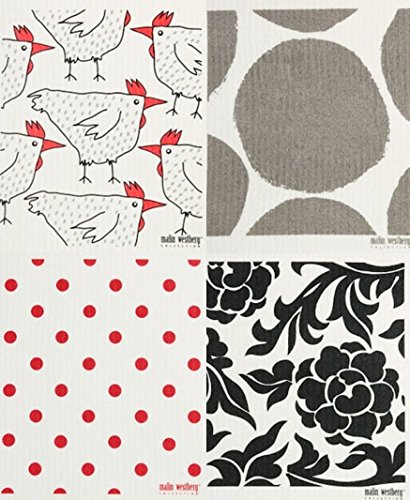 Swedish Dishcloth, Set of 4 RED & GREY (PN) Designs