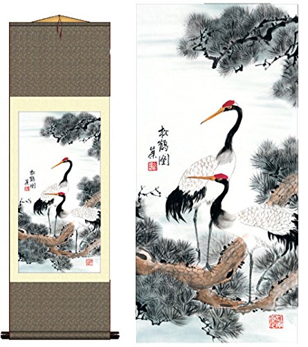 Grace Art Asian Wall Scroll, Cranes Resting in a Pine Tree
