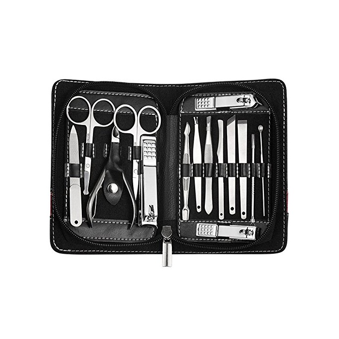 PhantomSky 15점 세트 스테인레스의 페디큐어 세트 손톱깎기 클리너 마니규아 essentional 세트