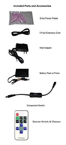 - This floral bouquet includes a 3V DC power supply with wall plug, component switch element, 3 foot extension cord, battery power pack with a 6 hour timer switch, and a remote dimmer switch. The lamp can be powered by the battery pack or by the included wall plug.