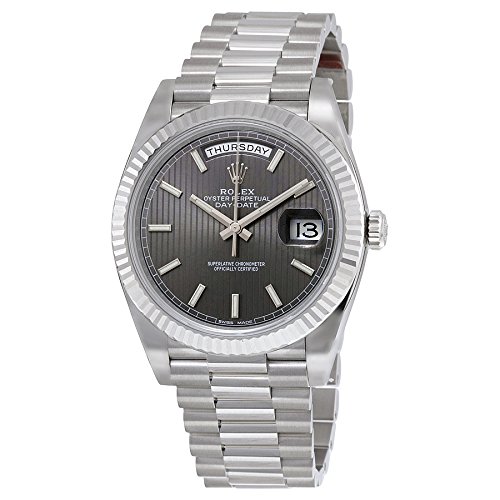 -. Title : Oyster Perpetual Day Date 40 Automatic Dark Rhodium Stripe Motif Dial 18kt White Gold Mens Watch 228239RSSP