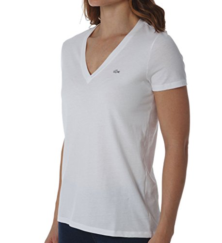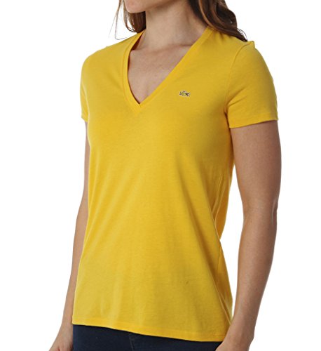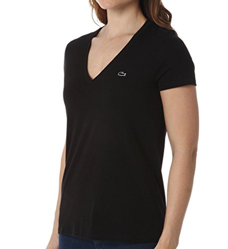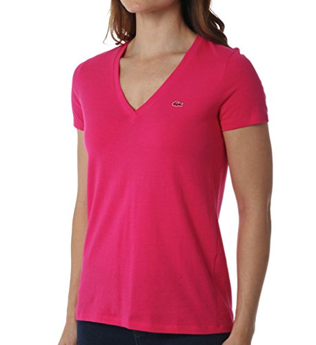 Short-sleeve t-shirt in cotton jersey featuring V-neckline and Lacoste logo applique at chest