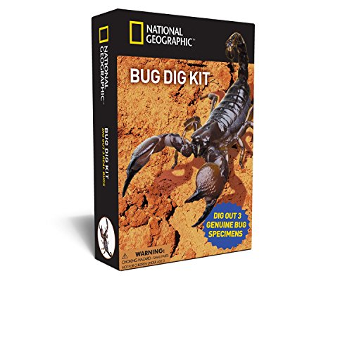 Dig Up and Explore 3 Amazing Insects!Kids will excavate and explore real insect specimens with this Bug Dig Kit from National Geographic! Each specimen is perfectly preserved in transparent acrylic, so children will be able to study their bugs from all angles. National Geographic’s full-color learning guide will teach your child all about a fascinating variety of insects, arachnids, and arthropods.