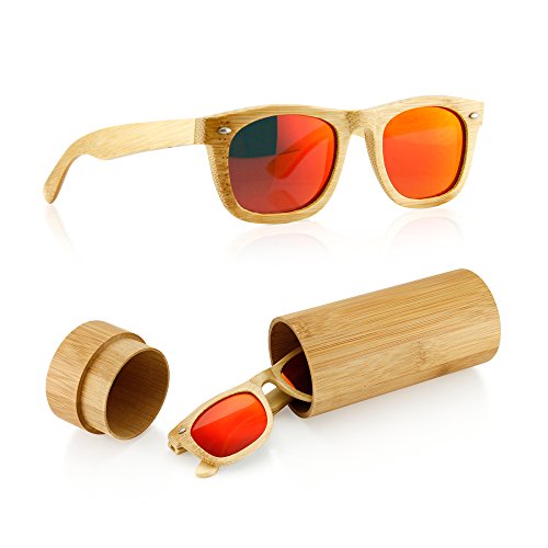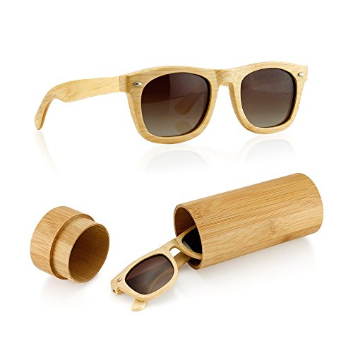 UNIQUE BAMBOO FRAMES - They're made with actual high quality bamboo, so every pair is different. Carbonized bamboo frames strengthen the glasses and enrich the color. It's the perfect combination of flexibility and durability. Each piece comes with a high quality wooden case to protect and clean your glasses so you always look your best.