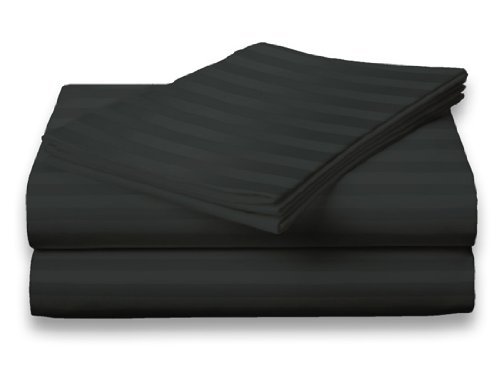 -. Title : Queen Size Black 400 Thread Count 100% Cotton Sateen Dobby Stripe Sheet Set