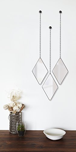 Each mirror measures 11-1/4 inches by 7 inches by 1/2 inch with 15'' chain