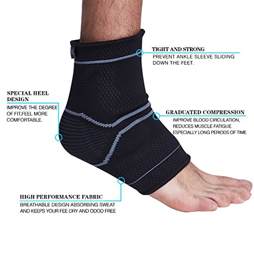-. Feature : PROMOTES FASTER MUSCLE RECOVERY: Our ankle braces apply even pressure across your ankle joint, which provides moderate relief from a variety of ailments including plantar fasciitis,arthritis,sprains,swelling,tendonitis,muscle fatigue, and other ankle pain. / PERFECT FIT: The elastic fabric Give Superior Foot And Ankle Support And Comfort. Lightweight and with an amazing velvety soft feel. It is not only lightweight and breathable but durable. / PREMIUM QUALITY COMPRESSION SOCKS: Great for volleyball, tennis, soccer, cycling, running and other sports. Our ankle braces allows you to remove more worries, Enjoy the pleasure of sports. / ULTRA-BREATHABLE and MOISTURE WICKING: Easy to wear, our soft unisex elastic brace keeps you dry and comfortable even with long use and make it easier to be worn all day throughout the night. / 100% MONEY BACK GUARANTEE: In the very unlikely event that you do not absolutely Love this foot sleeve, for any reason whatsoever, we'll refund you the full price.