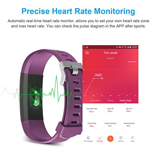 -. Title : Vigorun Fitness Tracker Heart Rate Monitor, Sport Smart Wristband IP67 Waterproof Activity Tracker with Pedometer Step Distance Counter Calorie Burned and Sleep Monitor for Kids Women Men(purple#)