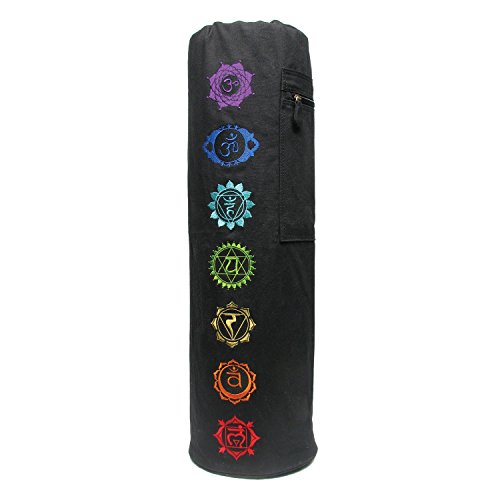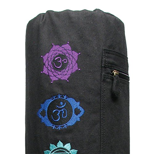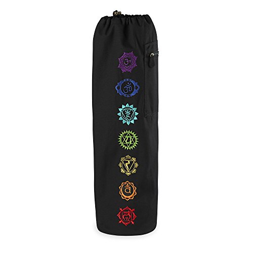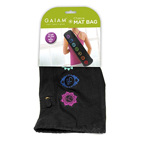A chic, functional spin on a classic design, Gaiam's Top Loading Yoga Mat Bags are roomy enough for your yoga, Pilates or fitness mat. This 100% cotton mat bag also sports a zippered front pocket to hold essentials to tote back and forth from class or the studio. Machine wash and dry flat. 24"L x 6" diameter.