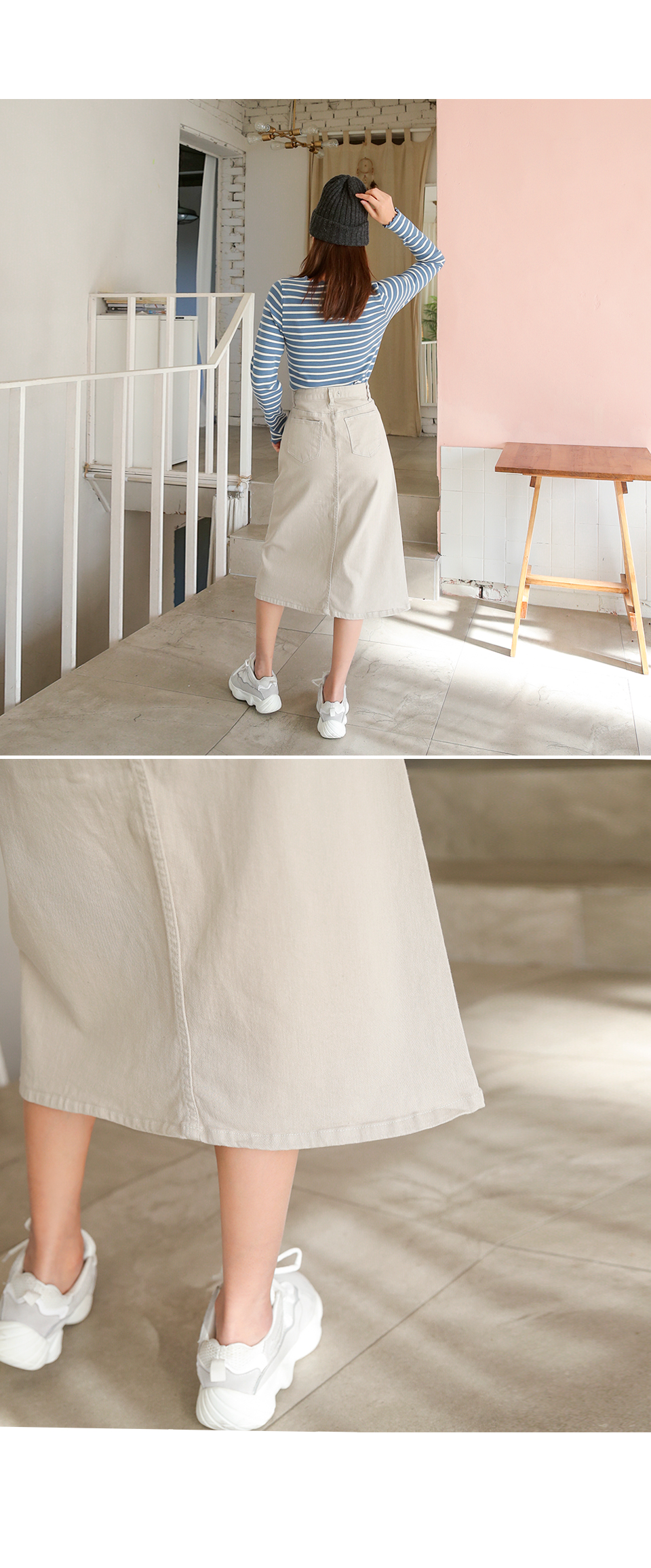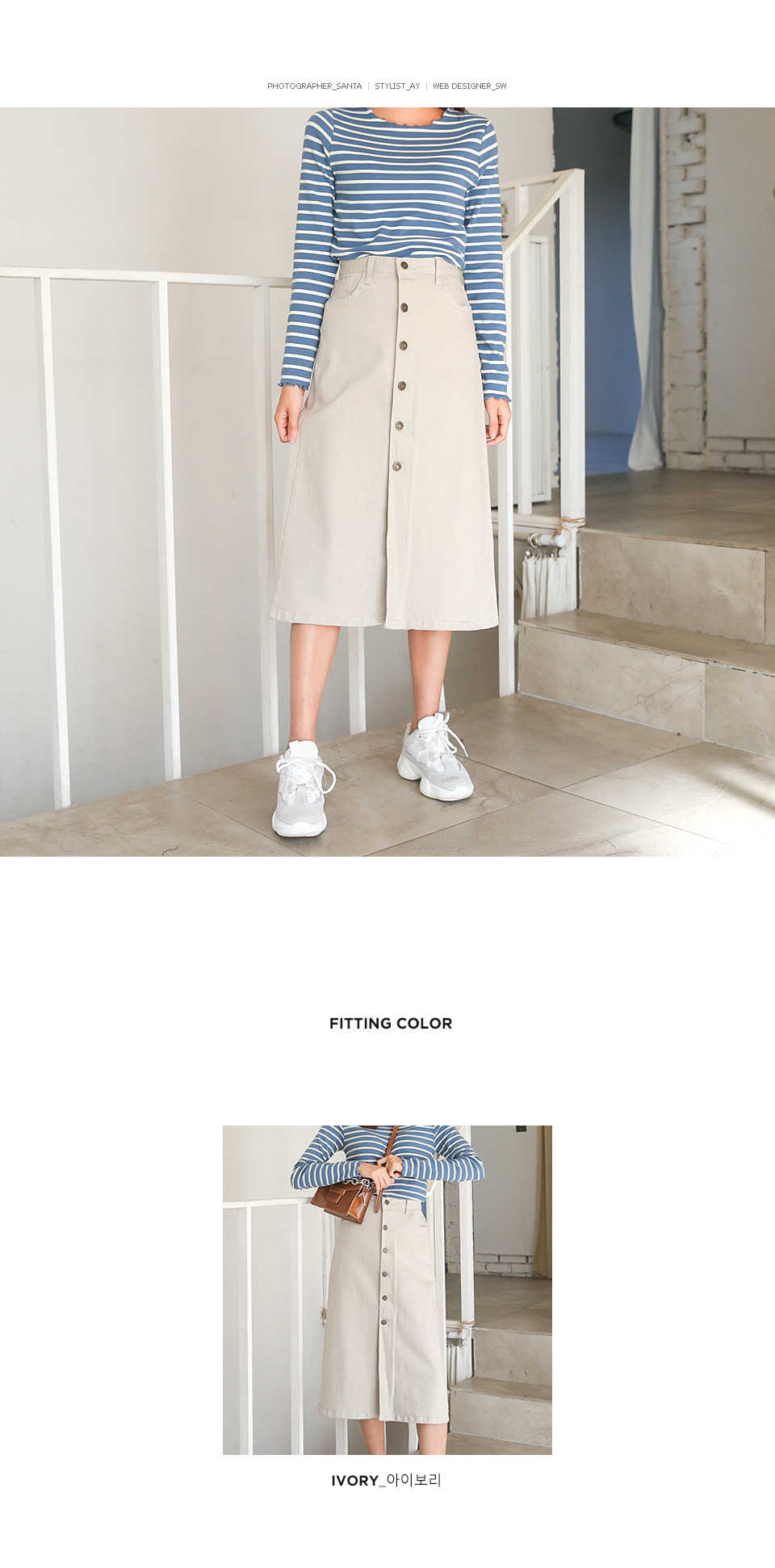 앞면 단추 디테일로 밋밋함을 덜하고 미디 기장으로
