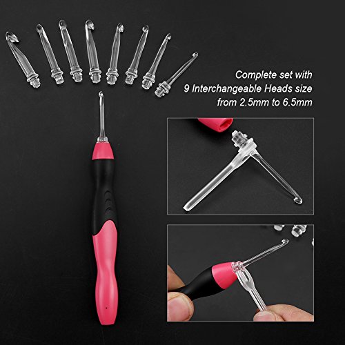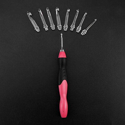Led Crochet Hooks,Professional 9 in 1 Led Light Up Crochet Hooks Knitting Needles Weave Sewing