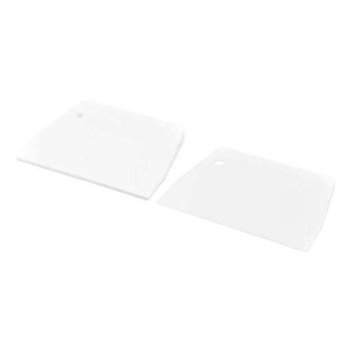 Studio : uxcell Publisher : uxcell Product Description Professional flexible plastic scrapers. These scrapers are tough enough for removing flour dough batter and pastry etc from working areas. Used for getting dough or pastry of work surface.Made of the plastic material, is great for making cakes. Built in a hanging hole, is convenient to hang for keeping dry and clean.