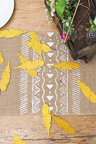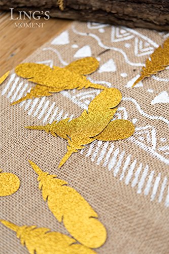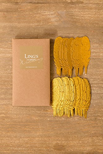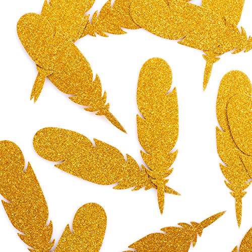 Ling's moment Bohemian Wedding 50pc Gold Feather Confetti Glitter Paper Feather for Wedding Bridal Baby Shower Decorations, Boho Nursery Banner Kits, Home Bedroom Teepee Party Décor