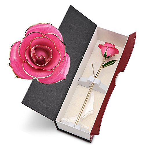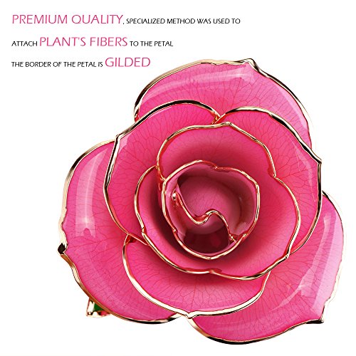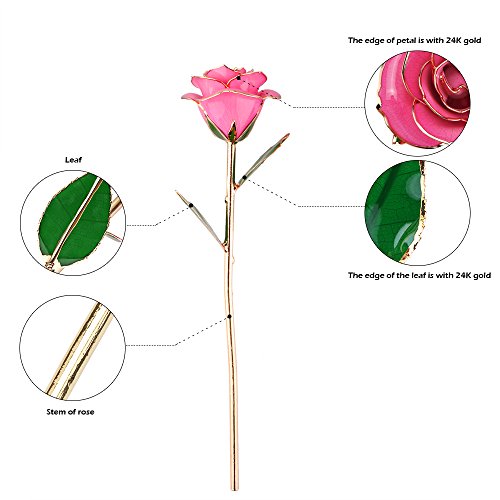 Gold plated Rose Sunsbell 24K Gold Foil Artificial Trimmed Rose with Transparent Stand Long Stem Flower Exquisite Box Gift Romantic Thanksgiving Mother's Day Valentine's Day Birthday Gift (Pink)