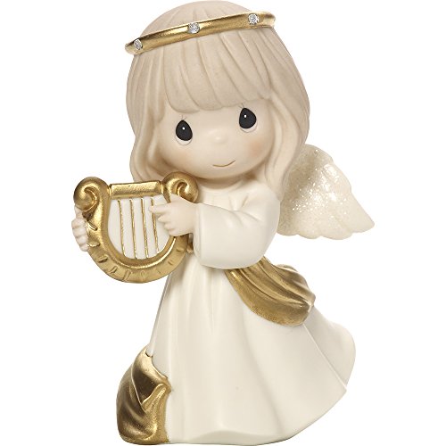 Precious Moments Make Sweet Melody Angel With Harp Bisque Porcelain Figurine 171023