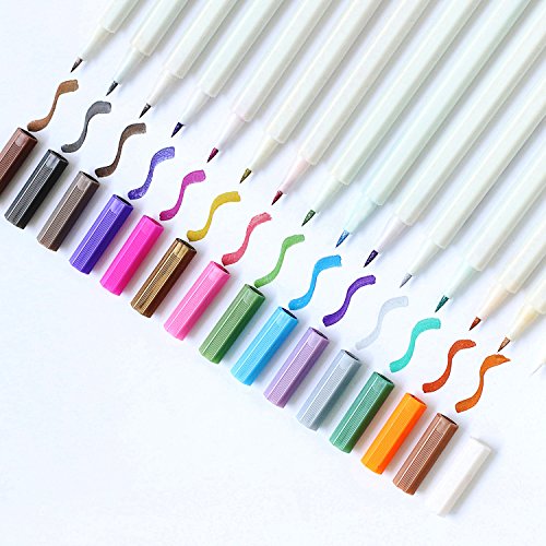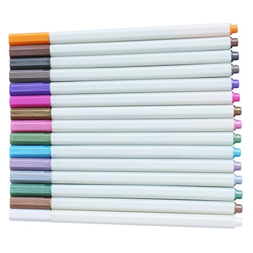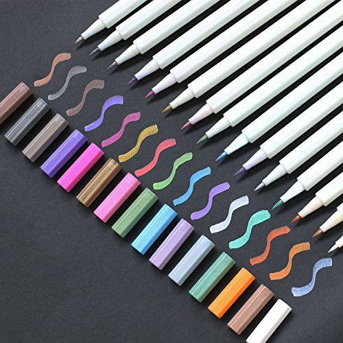 Metallic Markers - Dyvicl Metallic Brush Markers Set of 15 Assorted Colors for Card Making, DIY Photo Album, Scrabooking - Brush Tip