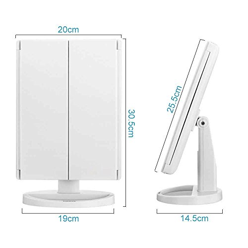 Lighted Makeup Mirror: 3 Panel provide a wide-angle viewing for you to see clearly your facial features and make a more perfect makeup with each detail taken care of.