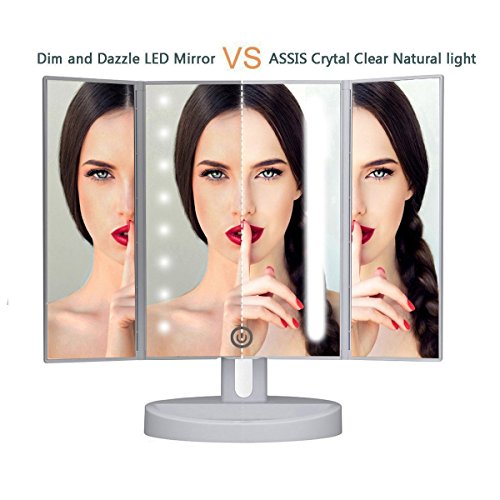Glare-free Illumination :The 24 natural LEDS are now installed within the two side light bars, instead of the visibly dazzling LEDs situated on the peripherals of the tri-fold mirror. This provides you with a clear reflection without dazzling your eyes.