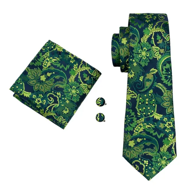 LS-1444 배리. 좋아서 패션 남성 넥타이 100% 녹색 꽃 실크 넥타이 손수건 커프스 세트 남성 웨딩 파티 신랑 비즈니스
