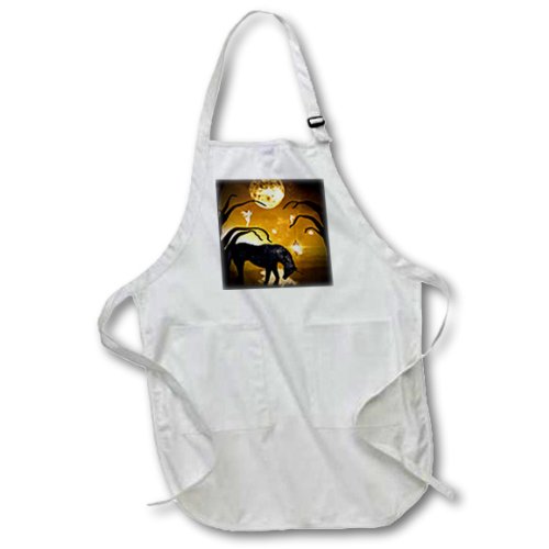3dRose apr_49004_4 Black Unicorn in Front of Full Moon with Fairies Full Length Apron with Pockets, 22 by 30-Inch, Black