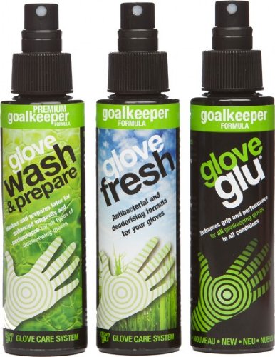 Studio : SEI Publisher : SEI Binding : Misc. Product Description #900333 A three step system to improve goalkeeper glove performance and durability. Comes with a 120 mL bottle of Gloveglu Wash Prepare, a 120 mL bottle of glovefresh, and a 120 mL bottle of gloveglu. 0