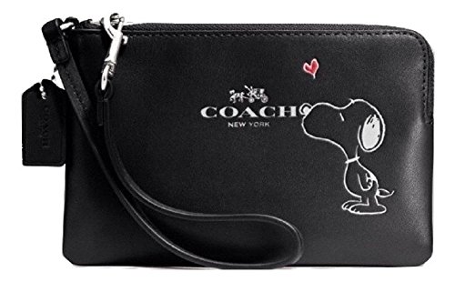 -. Title : Snoopy Corner Zip Wristlet, Black, F65193