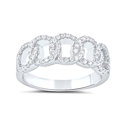 -. Title : Sterling Silver Simulated Diamond Chain Link Ring (Size 5 - 9)