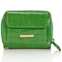SAMANTHA BROWN CASH CARD COIN LEATHER ACCORDIAN WALLET - CROCO EMBOSSED WALLET - KELLY GREEN